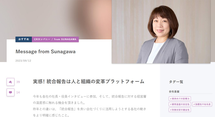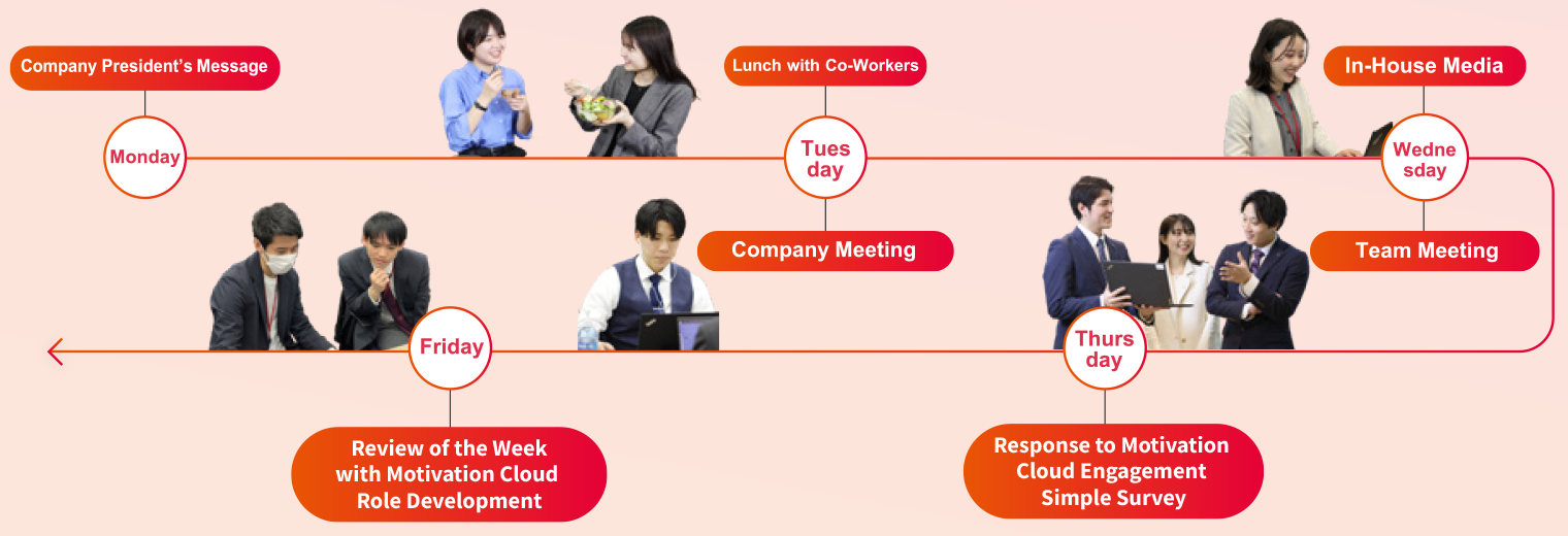 The director and officer in charge of each Group company send a message once a month, and in my company, the company president also sends a weekly message on the company intranet. It’s really helpful for getting a clear idea of what to focus on during the week.