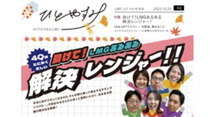Media for all LMG employees is updated once or twice a month. Today, I read LM Hitoyasumi, which is packed with information related to daily work.
