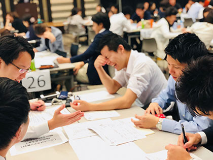 This training promotes proactive participation with an “edutainment” format that makes learning fun, and a format utilizing group dynamics encourages participants to come to realizations themselves, rather than a one-way transfer of information from instructors to trainees. The training includes a diverse range of activities, such as assembling a robot and using optical-illusion drawings.