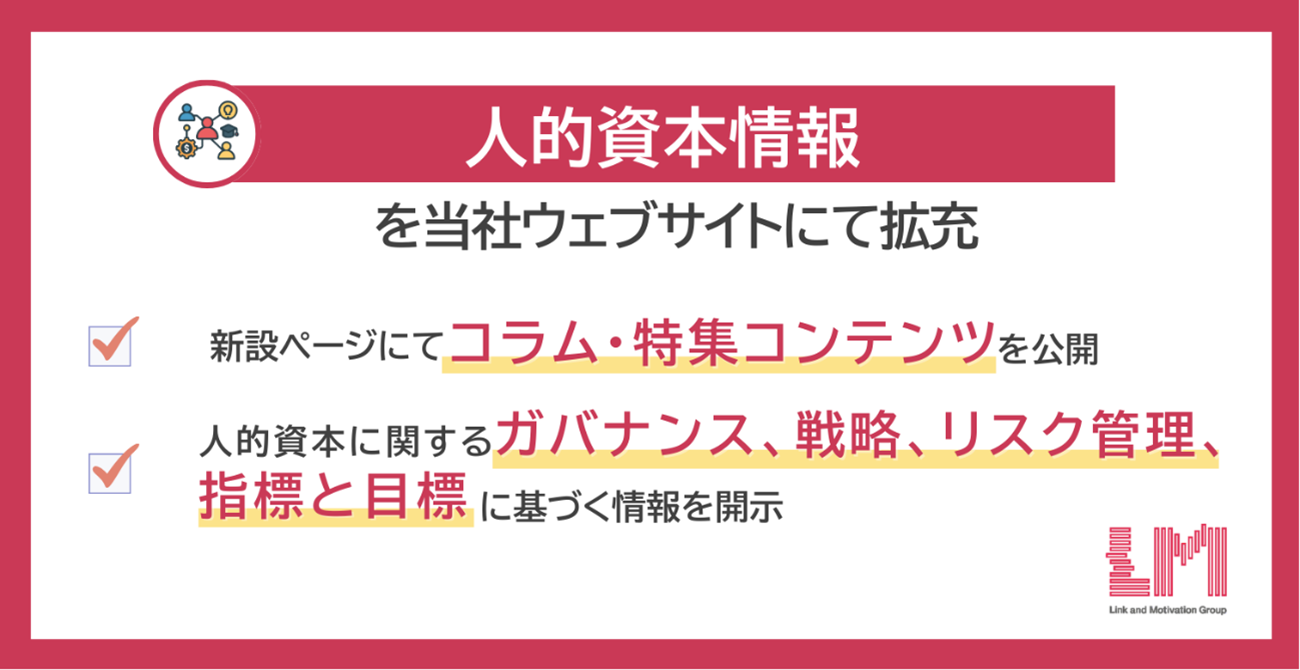 株式会社リンクアンドモチベーション(本社:東京都中央区、代表:小笹芳央、証券コード:2170、以下当社)は、人的資本情報を当社ウェブサイトにて拡充したことをお知らせいたします。