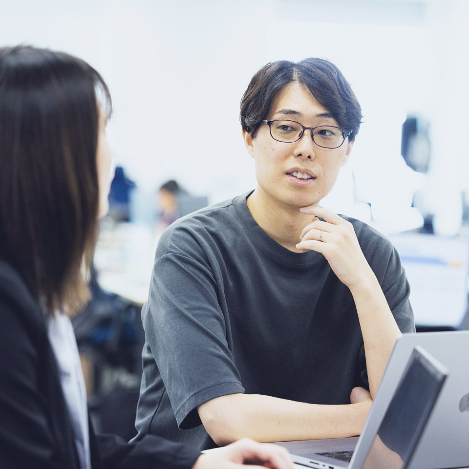 未経験からのジョブチェンジでしたが、社内にはそうしたキャリアの転換を選ぶ人も多く、挑戦を奨励する社風があります。私も「あと半年で、このくらいの仕事ができるまでに成長しよう!」「次はこういうインプットがおすすめだよ」といった前向きなアドバイスを周囲からたくさんもらい、「君は一人前のエンジニアに当然なれる」という空気をつくってもらったことが、大きなモチベーションになりました。日常の業務のなかでも、個人の成長を応援し、挑戦的な仕事の機会を与える風土があると感じます。