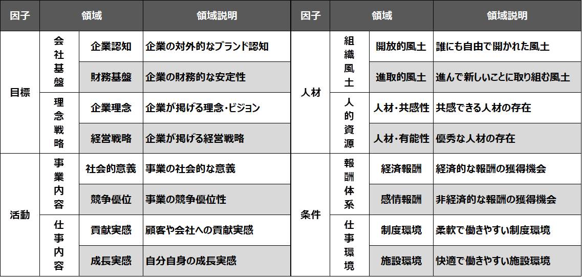 株式会社リンクアンドモチベーション独自の「組織への帰属要因となる4因子」を元に設定した16領域・全64項目について、「どのくらい求めているか(=期待度)」「どのくらい満足しているか(=満足度)」で構成。※期待度・満足度は5段階で回答