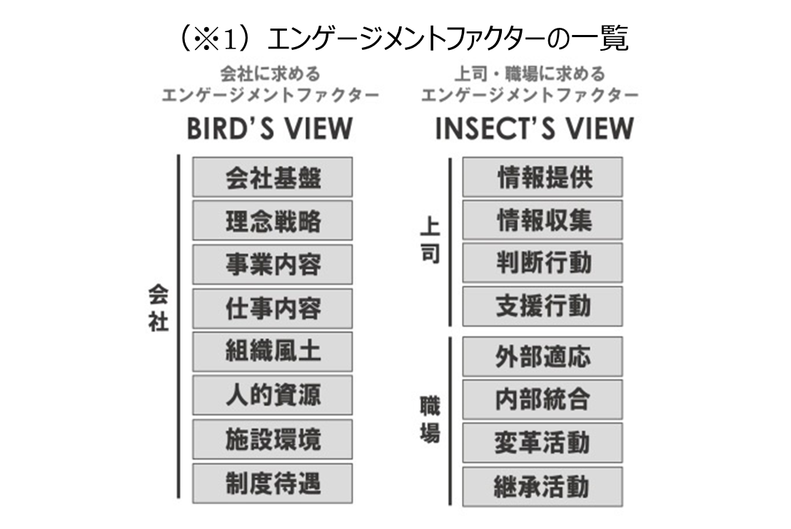 社会心理学を背景に、人が組織に帰属する要因をエンゲージメントファクターとして16領域に分類し(※1) 、