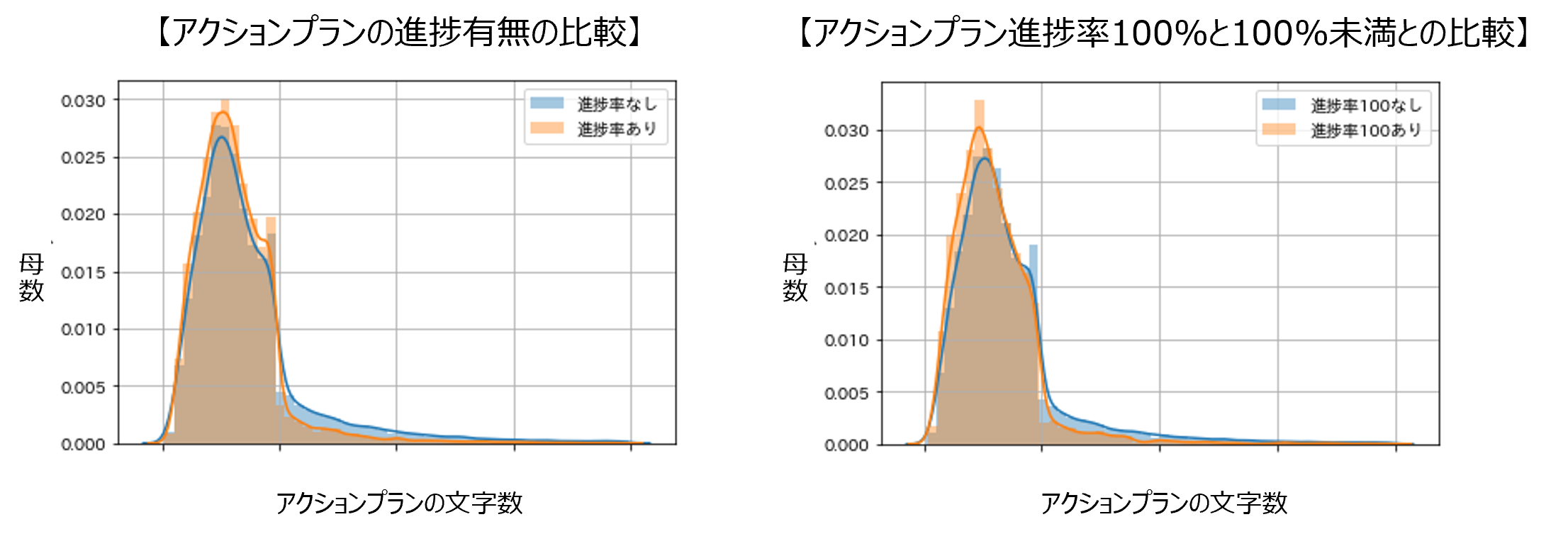 以上のことから、アクションプランの内容が、表現が短く端的で達成できる粒度であると、アクションプランの進捗率が高いと言える。