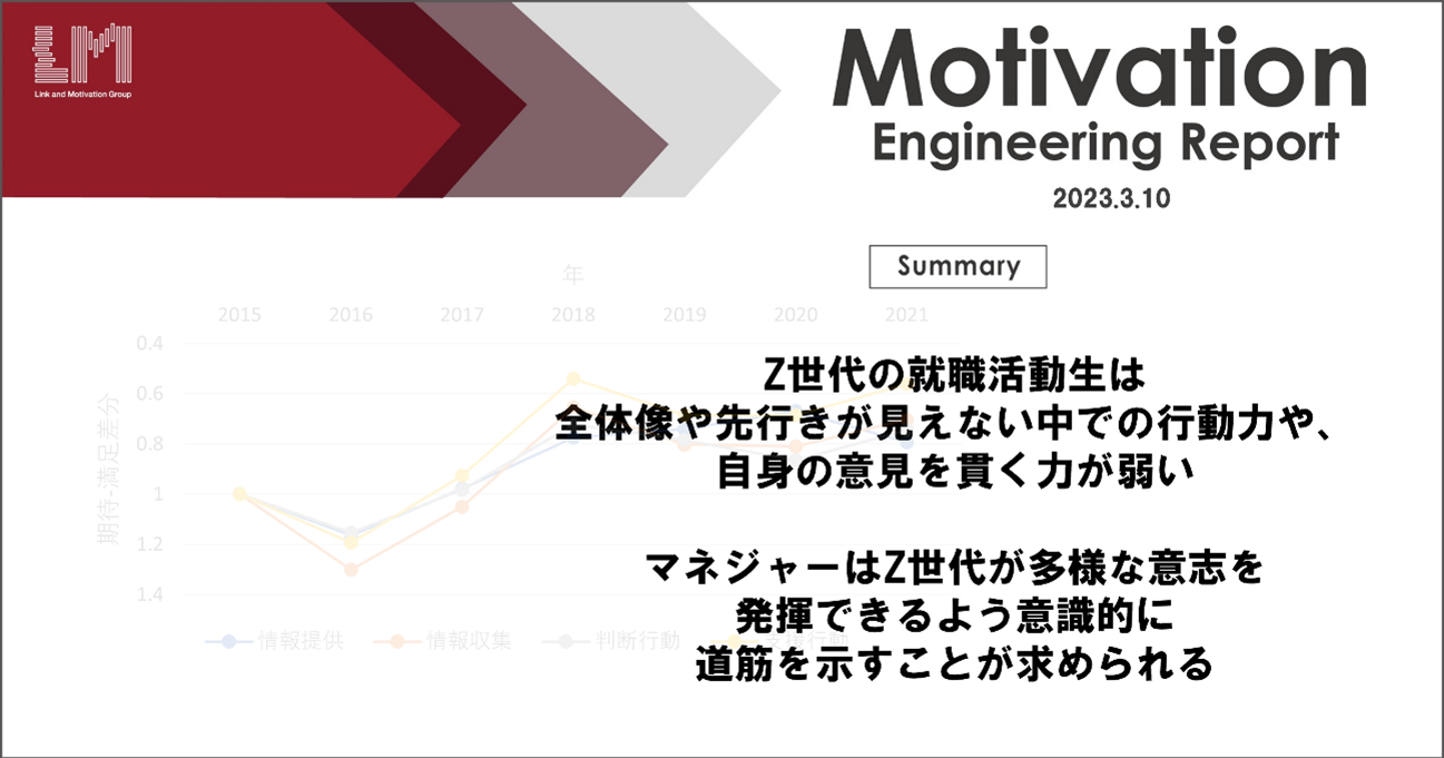 最新の研究結果 HOME 研究開発 モチベーションエンジニアリング研究所 最新の研究結果一覧 研究結果詳細ページ 「Z世代へ求められるマネジメント」に関する研究結果を公開 2023.3.10 株式会社リンクアンドモチベーション(本社:東京都中央区、代表:小笹芳央、証券コード:2170)の研究機関であるモチベーションエンジニアリング研究所は、「Z世代へ求められるマネジメント」に関する調査を行いましたので、結果を報告いたします。 調査結果は下記よりご覧ください。 ダウンロード 記事をシェアする