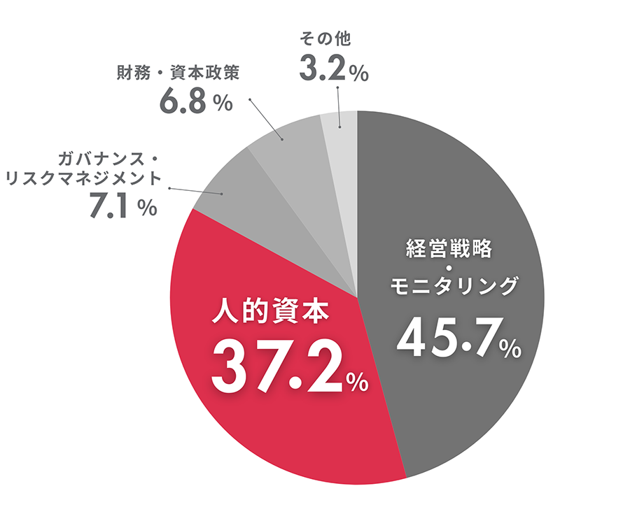 なお、当社グループの事業特性上、人的資本が多様な資本の価値創造の源泉であることから、取締役会や経営会議においては、人的資本に関する議案が占める割合が高くなっています。